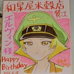 エルヴィン♥️ ♥️HAPPY♥️BIRTHDAY♥️ お誕生日おめでとうございます。 昨年は遅れたしたが、和泉屋米穀店さんに色紙をお届けできました。 仕事が忙しくて、なかなか大洗に行けなくて寂しいです。 #エルヴィン生誕祭2023 #エルヴィン生誕祭 #エルヴィン誕生日
