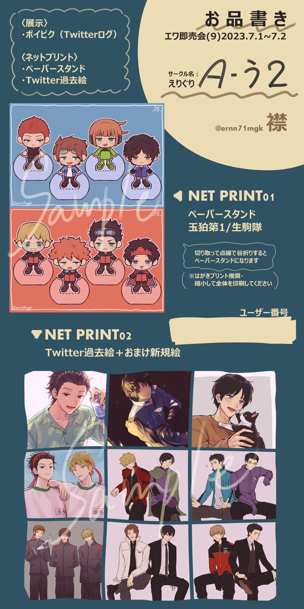 7/1-2 エワ即売会9にて【Cこ11】でスペースをいただきました! ・ネットプリント ・エアスケブ(書き込みボードやtwitterで受け付けます😊) の予定です! よろしくお願いします!✨ #エワ即売会 #エワお品書き202307
