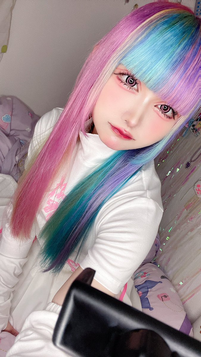 遂に……!!!約1年ぶりくらいに派手髪ふっかーつ!! せっかく白金までいってるし、せっかくアンバサダーだし、今まで中々手を出せなかったレインボーに挑戦してみた🌈 正面からはピンクと紫でゆめかわっぽく、後ろはガチレインボー🌈🌈 詳しいレシピ書ききれないからツリーに! #エンシェールズ47