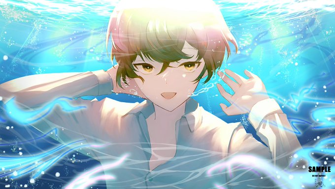 【お仕事】 トオツキシロイチ様のyoutubeヘッダー用&「エンゼルフィッシュ」歌ってみたに使用するイラストを描かせていただきました!トオツキさんの透き通るような繊細な歌声と鮮やかを表現しました。是非聞いてください! #歌ってみた #エンゼルフィッシュ