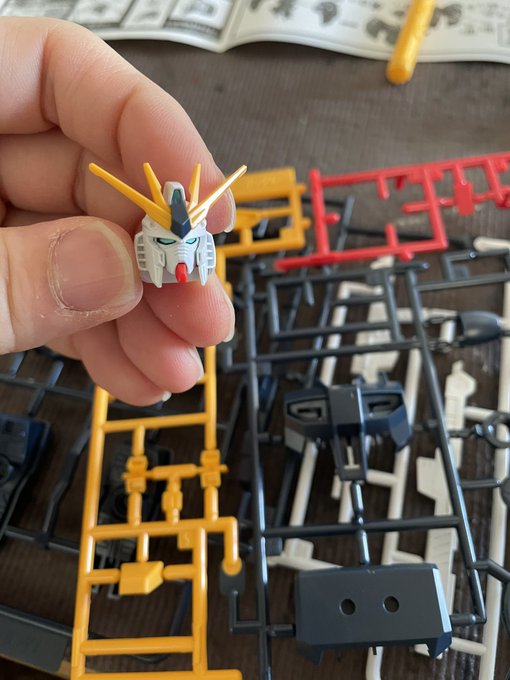 作ってる最中の写真だけど腕と足の設計が若干変わった以外はストライクとRX-78-2ガンダムを作ったことがあれば説明書なしでも組めるレベルに落とし込んであるかなぁという感じ。#ガンプラの画像を貼るとRTされると聞いて #エントリーグレードνガンダム