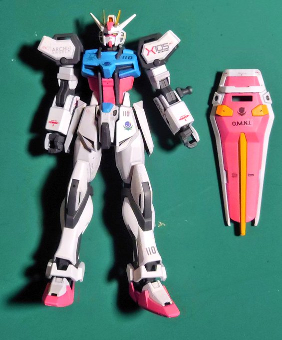 少し色足して 自作デカール貼ったです この後 汚していくです っていうか既になんか汚い💦 #ガンプラ #エントリーグレードストライク #EGストライク #ガンプラ好きと繋がりたい #ガンプラはどんな自由な発想で作ってもいいんだ #ガンプラの画像貼るとRTされると聞いて