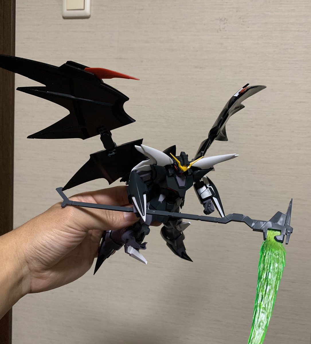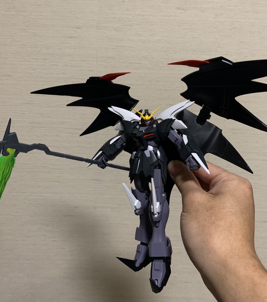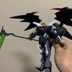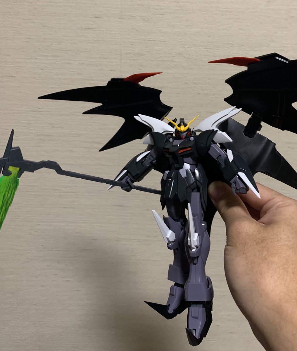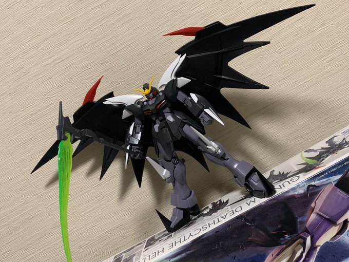 MGデスサイズヘルカスタム製作中 パチ組み完了😃羽がデカい!! この悪魔っぽさ、最高ですね。 シールは1枚も貼っておりません。 11年前に発売のキットですがスタイルも色分けもバッチリですねー👍 #ガンプラの画像を貼るとRTされると聞いて #ガンプラ #エンドレスワルツ