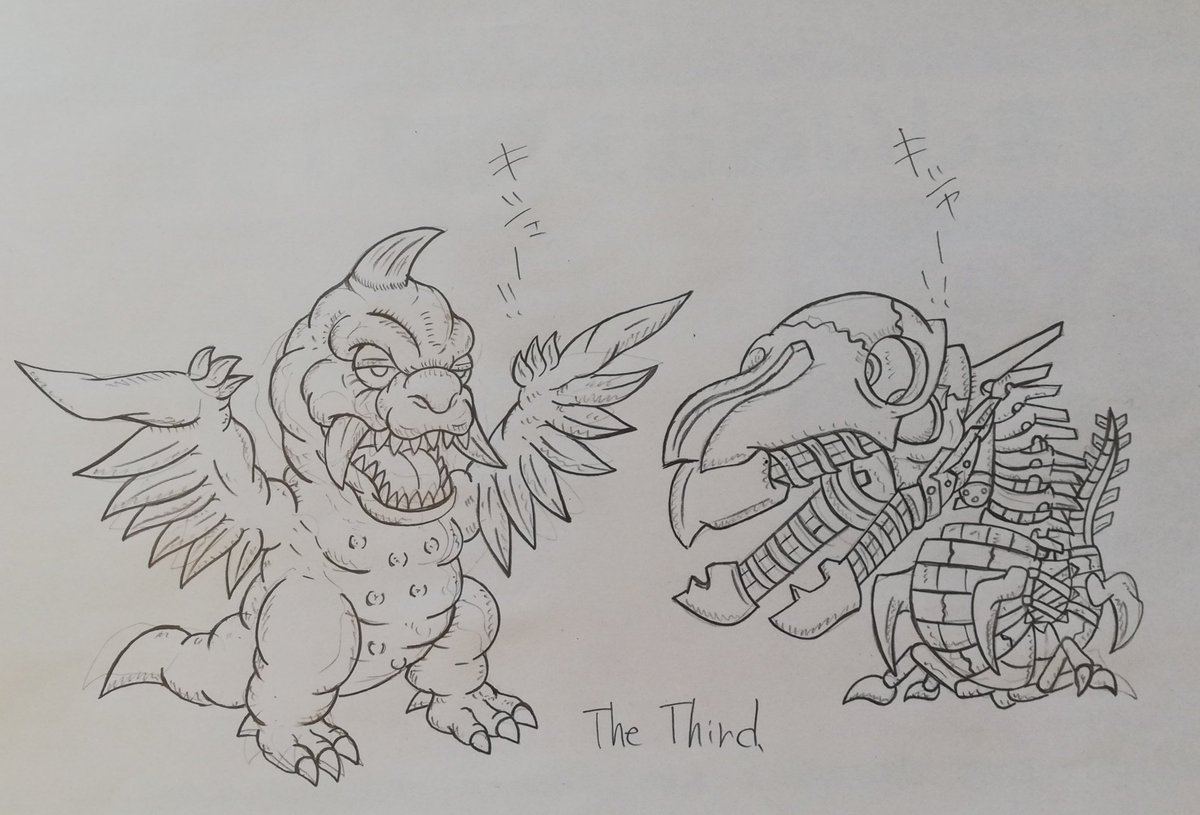 おはようございます🌞 本日の【朝の一筆】 二つの【シン】世界の【三番目】 【第三の使徒】は、ビックリマン風イラストをそのまま描かせて頂きました。 #シン・ウルトラマン #エヴァンゲリオン劇場版 #ペギラ