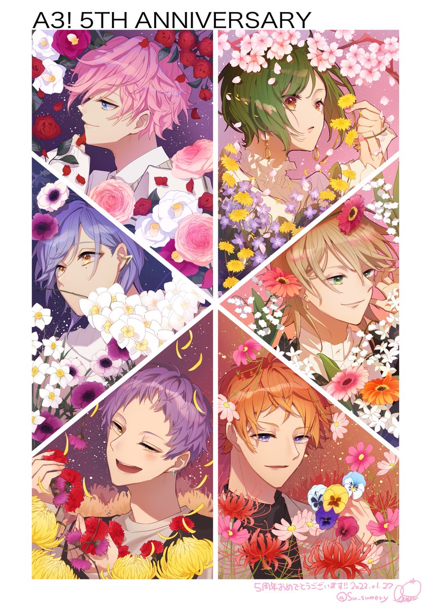 少し遅れますけど、改めて5周年おめでとうございます!㊗️🎉 これからもずっと満開に咲き続けようね!🌸🌻🍁❄️ #エースリー5周年 #A3_5th_anniversary #エースリー満員御礼