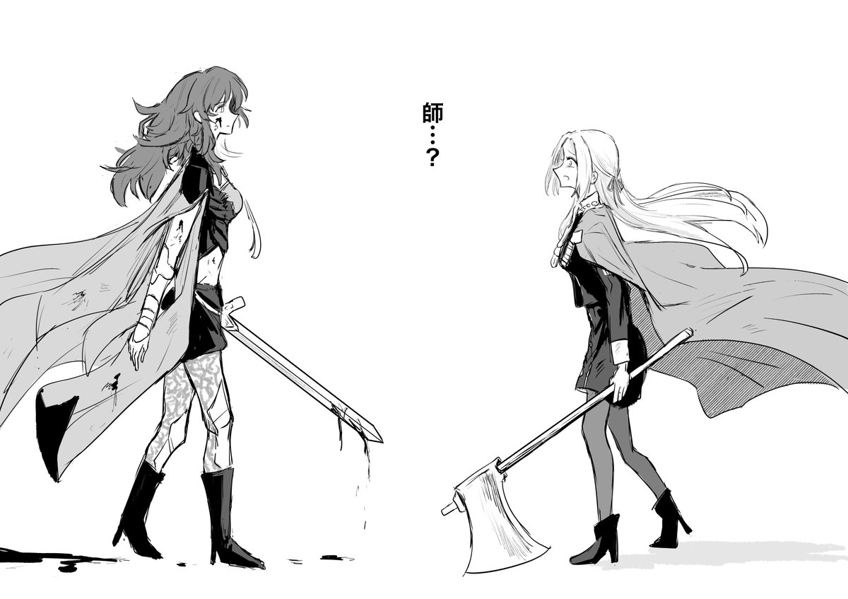 初めて戦場で灰色の悪魔と遭遇した無双エーデルガルト。初対面の宿敵を前にして、突然懐かしい記憶が一瞬浮かんで。思わず「師…?」と呟いた。 #エデレス #百合 #FE3H #FE風花雪月 #ファイアーエムブレム風花雪月 #エーデルガルト #イラスト #FireEmblem #FireEmblemThreeHopes #edeleth