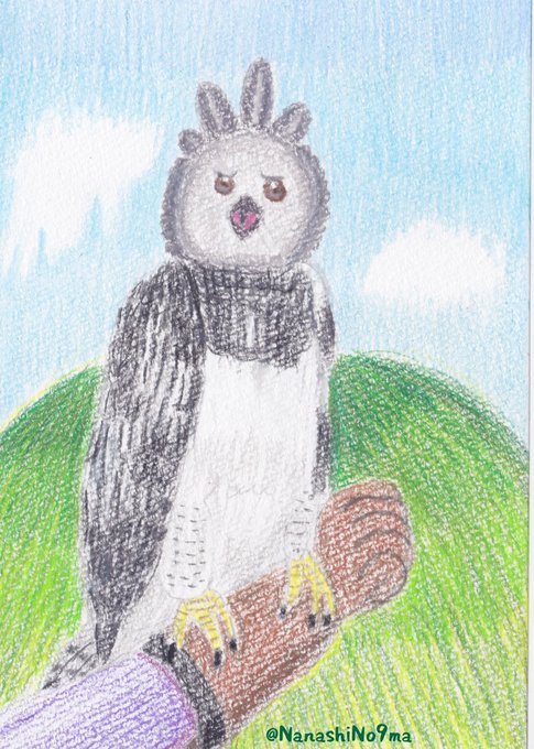 #絵描きさんと繋がりたい Harpy eagle 木漏れ日 おはようございます。 #オウギワシ の正面を描きました。 意外とコミカルにならずに済んだけどインパクトがすごいですね。 週の真ん中、無理せず良い一日を😌
