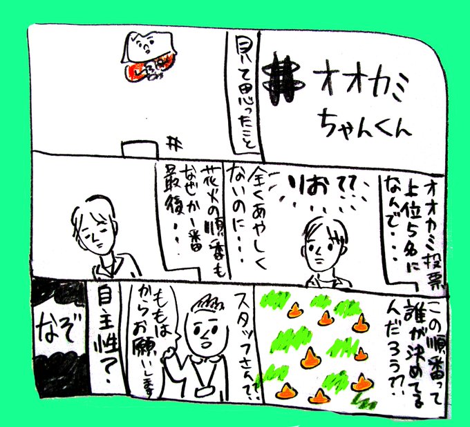 【#オオカミちゃんくん 】 見て思った。オオカミ投票上位5名に、なぜりお??全くあやしくないのに。花火の順番もなぜか一番最後だし。この順番誰が決めたんだろう?? ■スタッフさん? ■自主性? 『なぞ』 #漫画が読めるハッシュタグ
