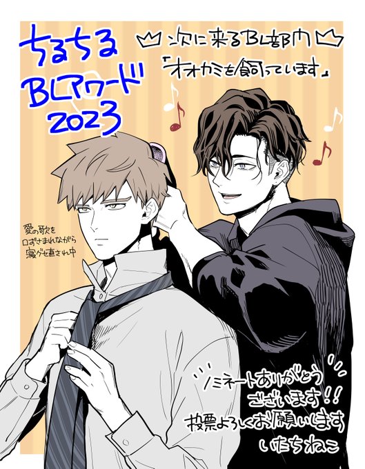 【ちるちる #BLアワード2023】 “次に来るBL部門”に #オオカミを飼っています がノミネートされました🥳🎊 応援してくださるみなさんのおかげです😭✨ ありがとうございます! 投票期間は2/5(日)まで よろしくお願いします☺ 投票はコチラ👉chil-chil.net/blAwardNominat…