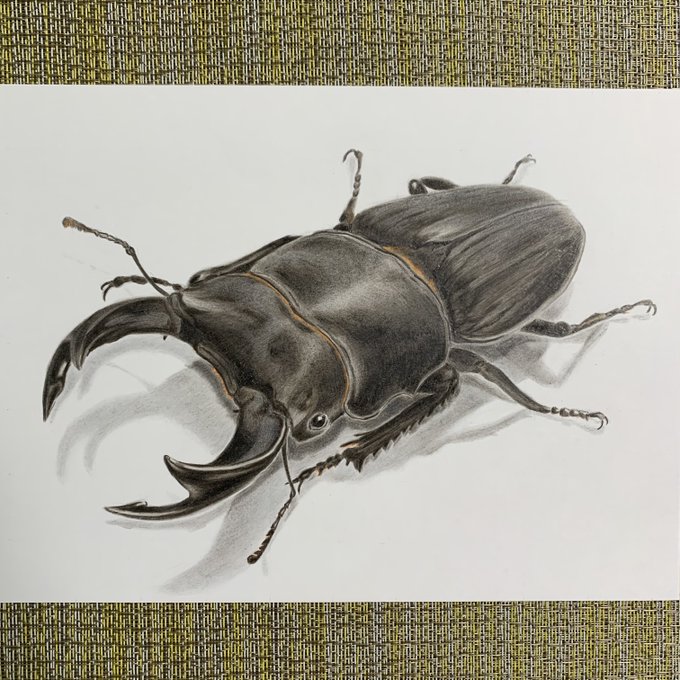 色鉛筆で描いた、 「オオクワガタ」🌳 一年半前に?描いた1枚..φ(・ω・*) 「イロドリアルの超リアルな色鉛筆画 P.40〜P.47 初級編⑤オオクワガタを描く」を参考にしました✨ #色鉛筆画 #色鉛筆 #オオクワガタ #イロドリアルの超リアルな色鉛筆画 #colorpencil #colorpencildrawing