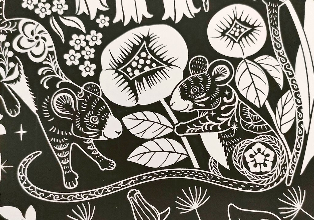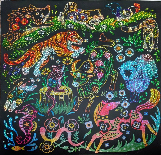 #スクラッチアート ✒︎ 「 #花と動物たちのファンタジー 」6枚目です🐠🐚🌼 2023(R5).06.16(金)完成 #心がやすらぐスクラッチアート #オオジカオリ さん #コスミック出版 #scratchart