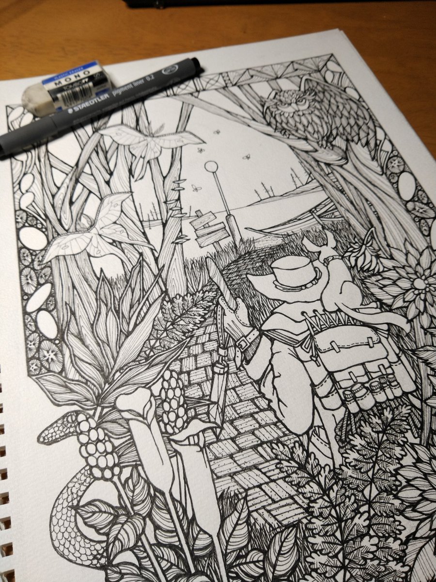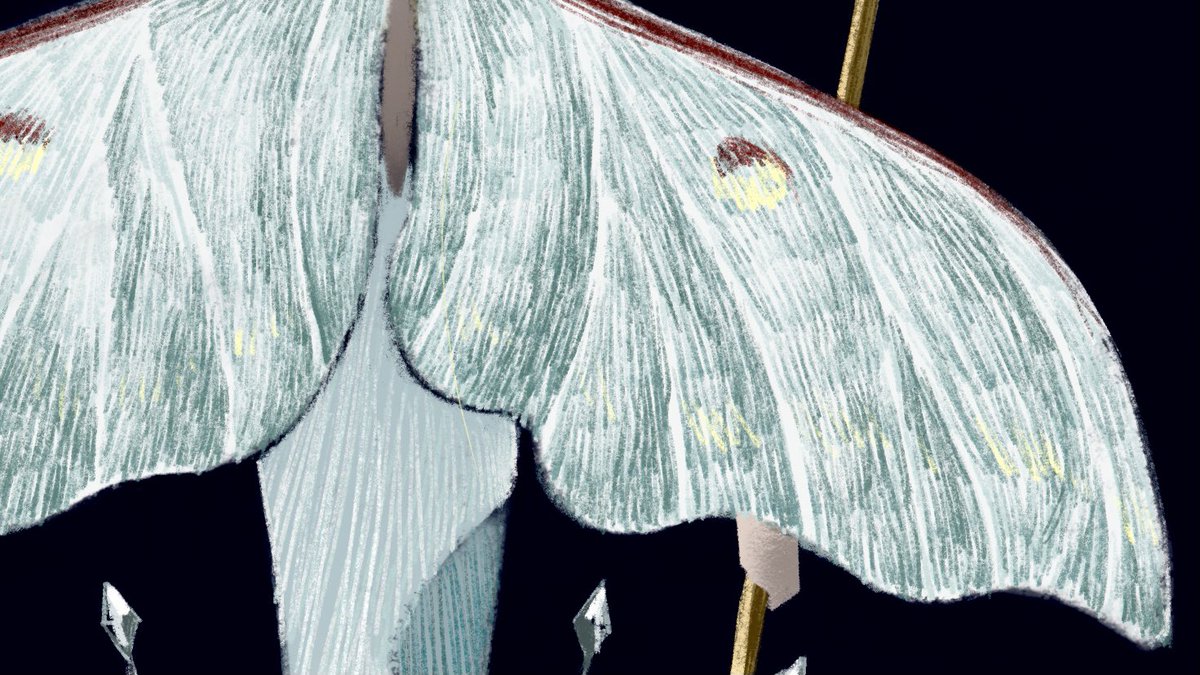 #inktober Day6 Spirit of Artemis Moth🌖 #inktober2021 #inktober2021day6 #spirit #moth #オオミズアオ #オナガミズアオ #蛾 #イラスト #イラストレーター #illustration #drawing #dailydrawing #一日一絵