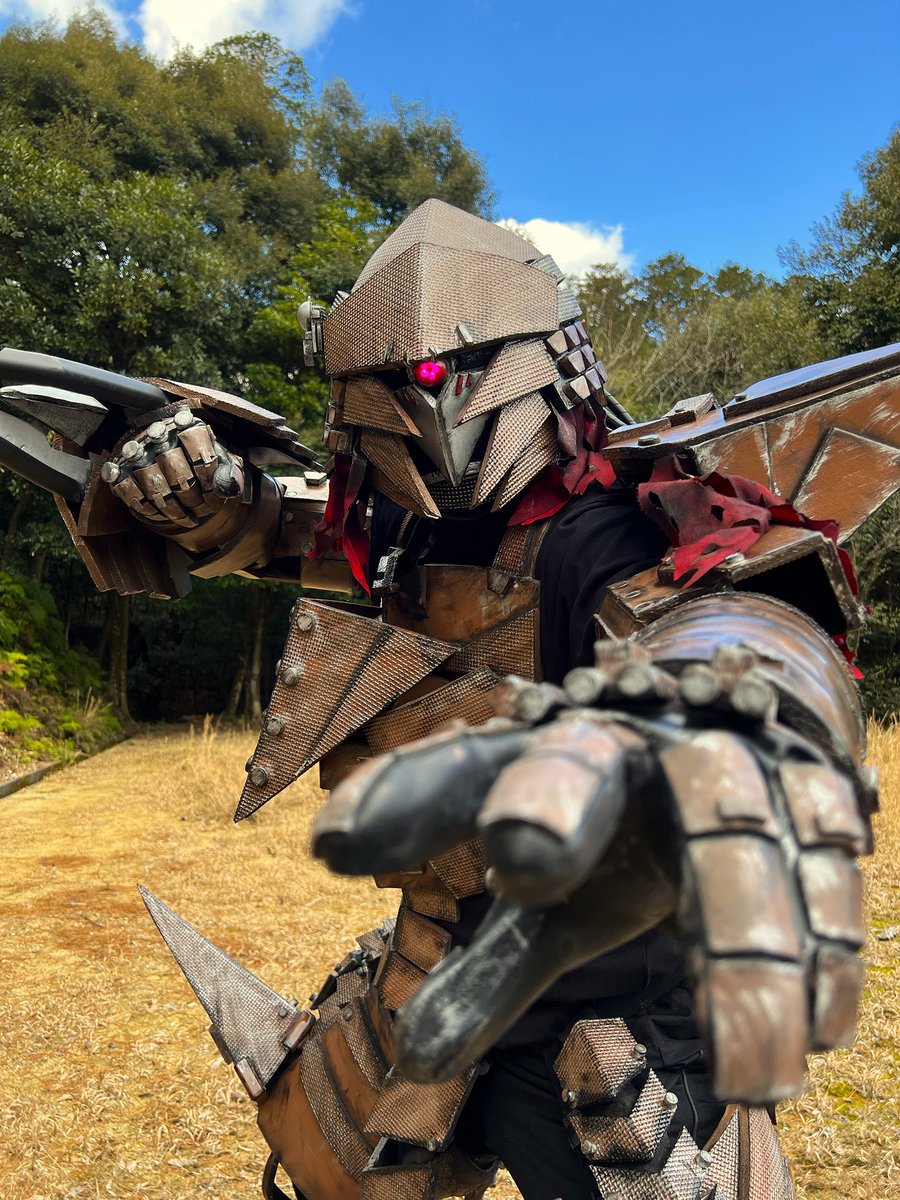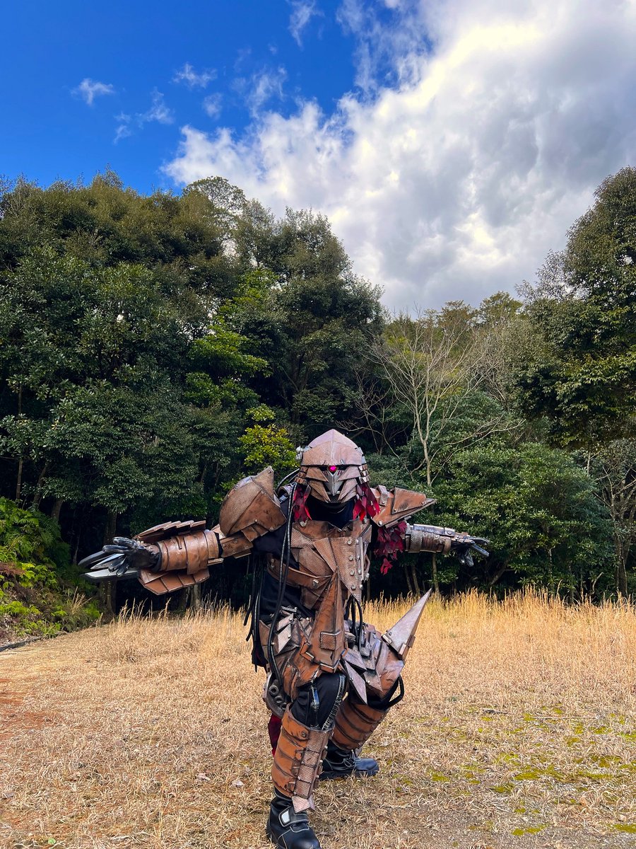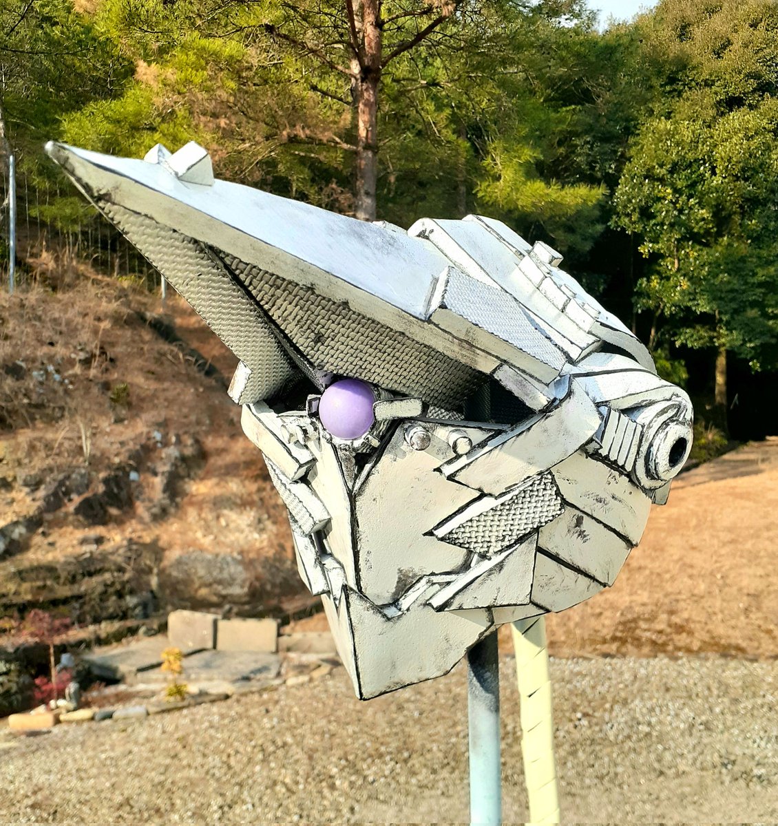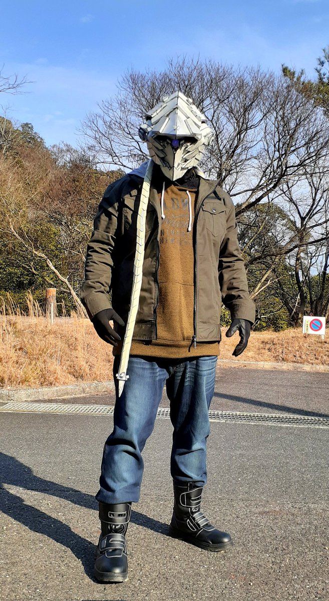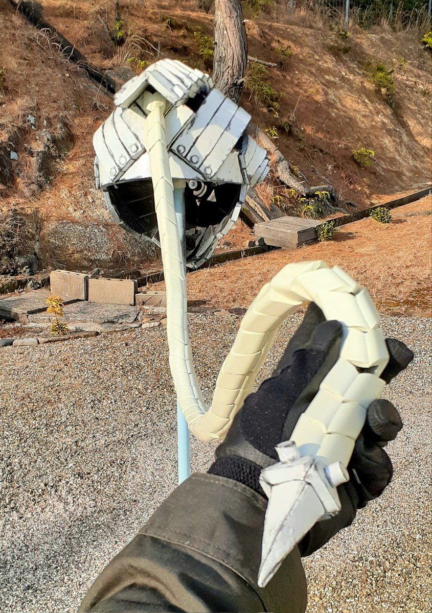 さぁ完成したぞ! モノアイヘッドNo.4 『ミツクリ』です! ミツクリザメに似てるなって思ったのでそう名付けました。 塗装はシンプルにホワイト噴いてからのブラックでスミ入れしたり汚したりしただけです! 超カッコイイ…💪🐙💪 #オクトパスクラフト #コスプレ