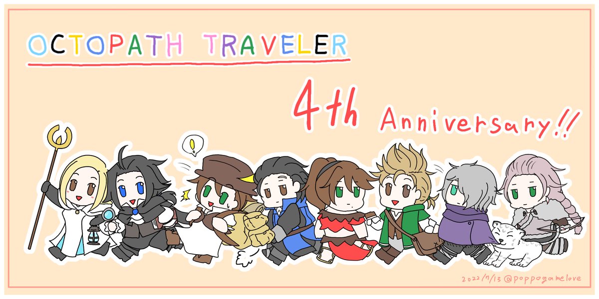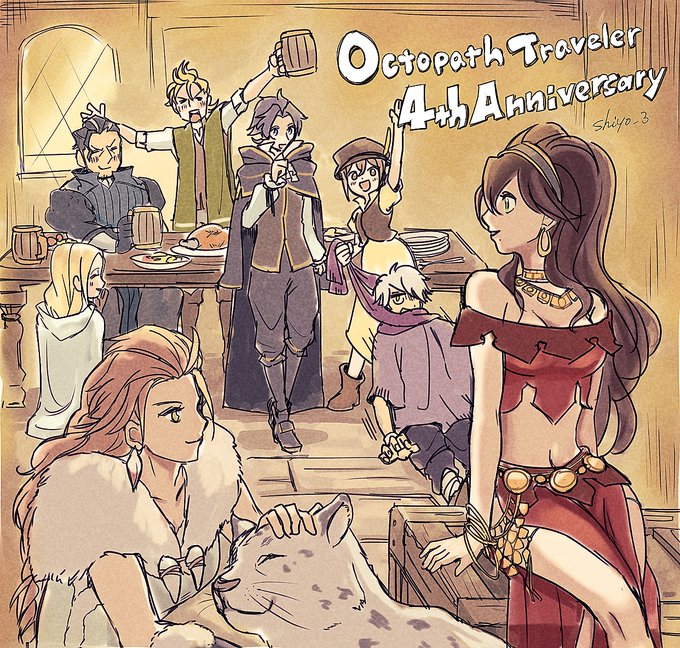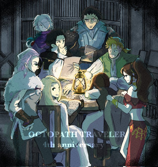 記念日から遅れてしまいましたがオクトパストラベラー4周年おめでとうございます! 8🐙周年の折り返しまだまだ全力で推し駆け抜けていきたいと思います!💪✨ #Octopath4thAnniversary #オクトラシリーズ4周年記念ファンアート