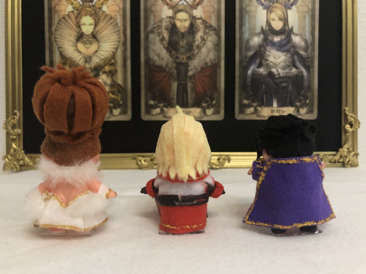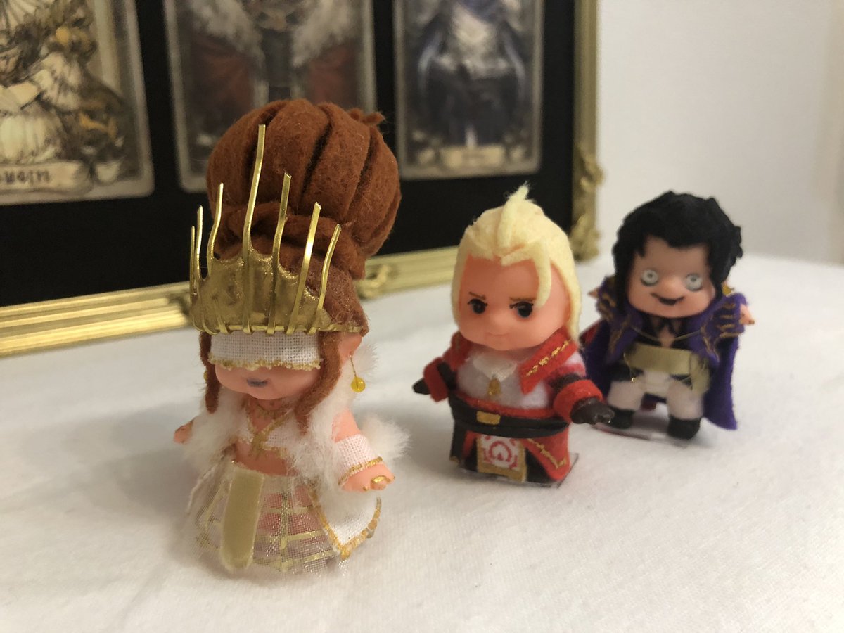 【なんでも部門】 ヘルミニア、タイタス、アーギュストのコスプレキューピーを作りました! 聖火神の指輪、額縁、ルビーも作りました。 ギリギリ間にあってよかった〜(>_<) #オクトラ芸術の覇者 #オクトラ大陸の覇者 #オクトラ周年祭 #コスプレキューピー