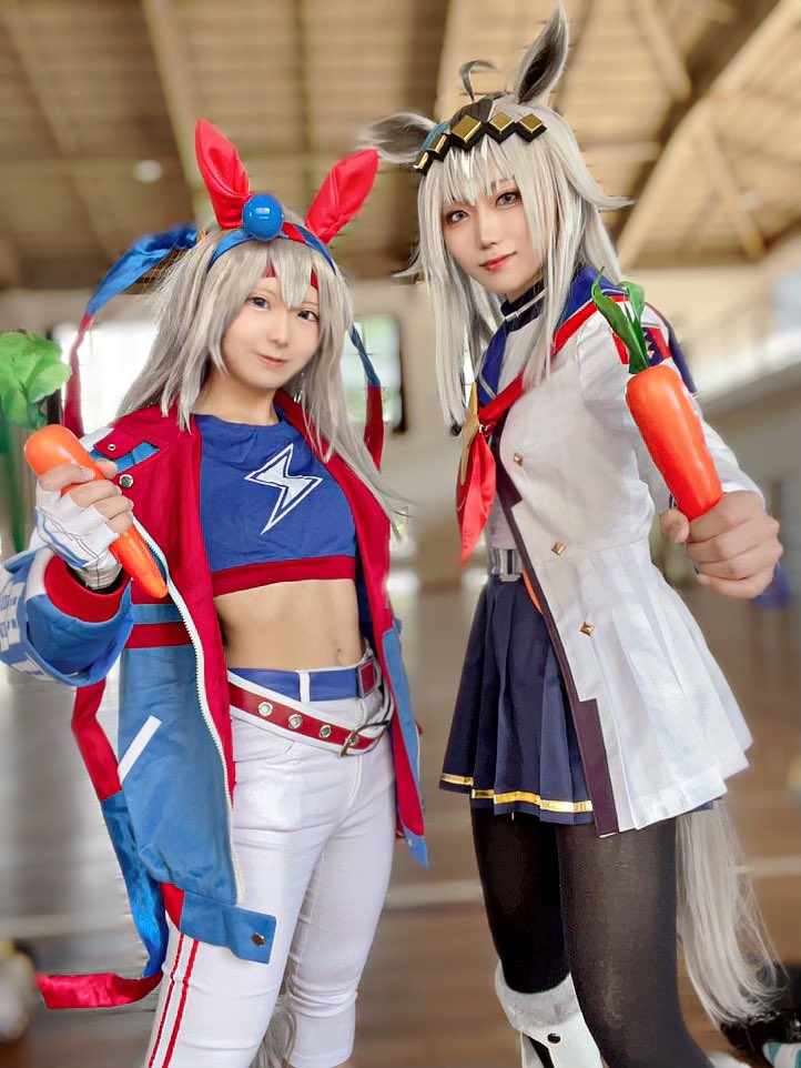 大型できぃぽぽちゃんとのオグタマ〜🥰🥕 何やっとるんか分からん楽しいオフ動画も載せとくぞ(ง ᵕωᵕ)ว (顔が伸びているのはご愛嬌) オグリ▶︎@ham_kiipopo #オグタマ #cosplay twitter.com/i/web/status/1…