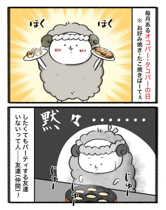 本日は「#オコパータコパーの日」ですよ♪ みんなにもう食べきれないよ〜って言わせたい✨ #イラスト #今日は何の日 #絵描きさんと繋がりたい #イラスト好きさんと繋がりたい #ゆるいイラスト #illustration