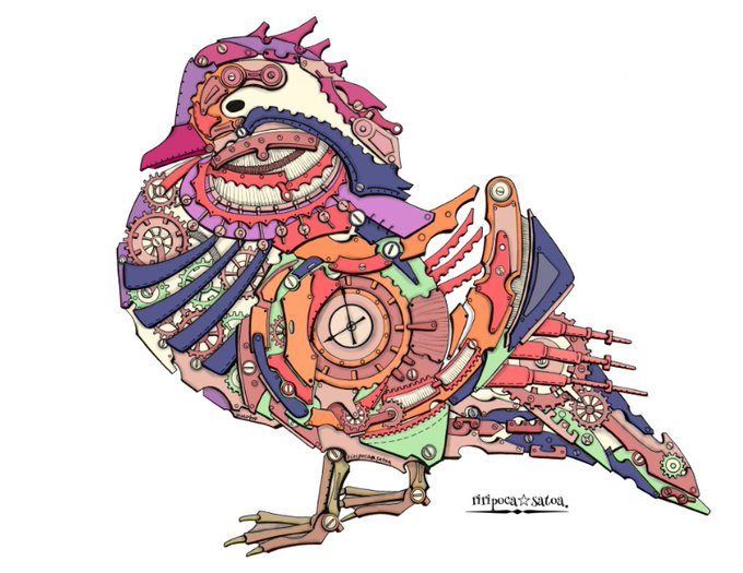 おはようございます(´∀`) これからサービス早出2日目 行ってきま〰︎す。゚(゚´Д`゚)゚。 今日もよろしくお願いします♪ ⚙オシドリ⚙ #スチームパンクイラスト #歯車イラスト #オシドリ #ペン画 #絵柄が好みって人にフォローされたい