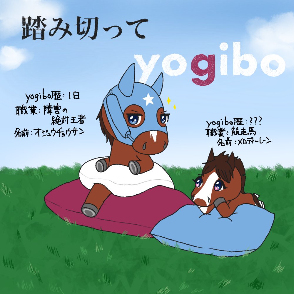 今日のメロちゃん 349 オジュウさんの引っ越し記念に、昨夜の配信に参加してくださった方の「#踏み切ってyogibo」の一言が気に入りすぎたので描きました✍ ちなみにyogiboさんのTraybo 2.0愛用していますが最高です🤤 #オジュウチョウサン #メロディーレーン #yogiboの絶対王者