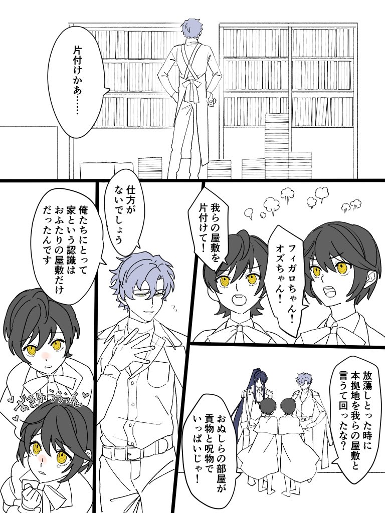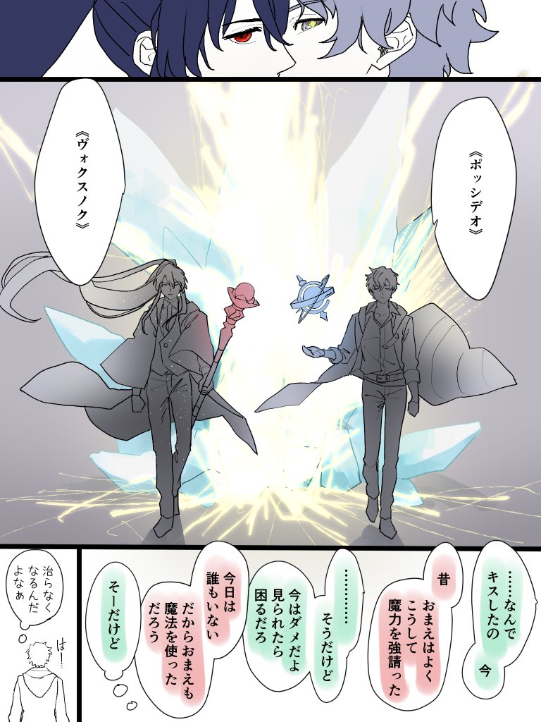 #オズフィガ版_週ドロライ 精霊で参加させていただきました!いつもの(?)仕上げしてない漫画です🙏オズフィガキスまではありますのでご注意ください⚠️魔力譲渡できる世界線です(話の都合によってその都度変わる予定です)