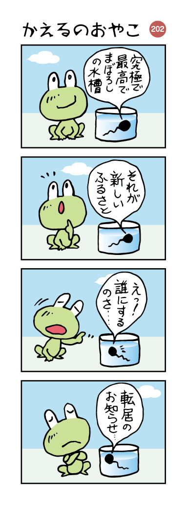 @chiplizard1 作 4コマ漫画 【カエルのギョーレツ】 twitterにて1日1話公開中! 第19回は 『オタマジャクシの話』です。 何卒よろしくお願いいたします。 #漫画が読めるハッシュタグ #4コママンガ #4コマ漫画 #カエルのギョーレツ #オタマジャクシ #木片トカゲ #宣伝