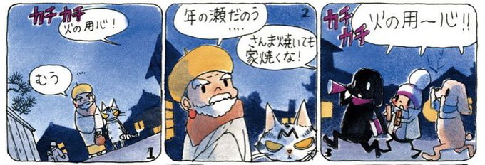 『今週読める #オチビサン』を 更新しました❗️ カチカチと 拍子木を打ちながら 豆粒町を歩いて回る オチビたち。 「さんま焼いても 家焼くな!」 火の用心!がいつの間にか 焼いて食べたいもの合戦に…? ▼続きはこちらで読めます🏠 ochibisan.com/weekly/2021/12… (スタッフ珠)