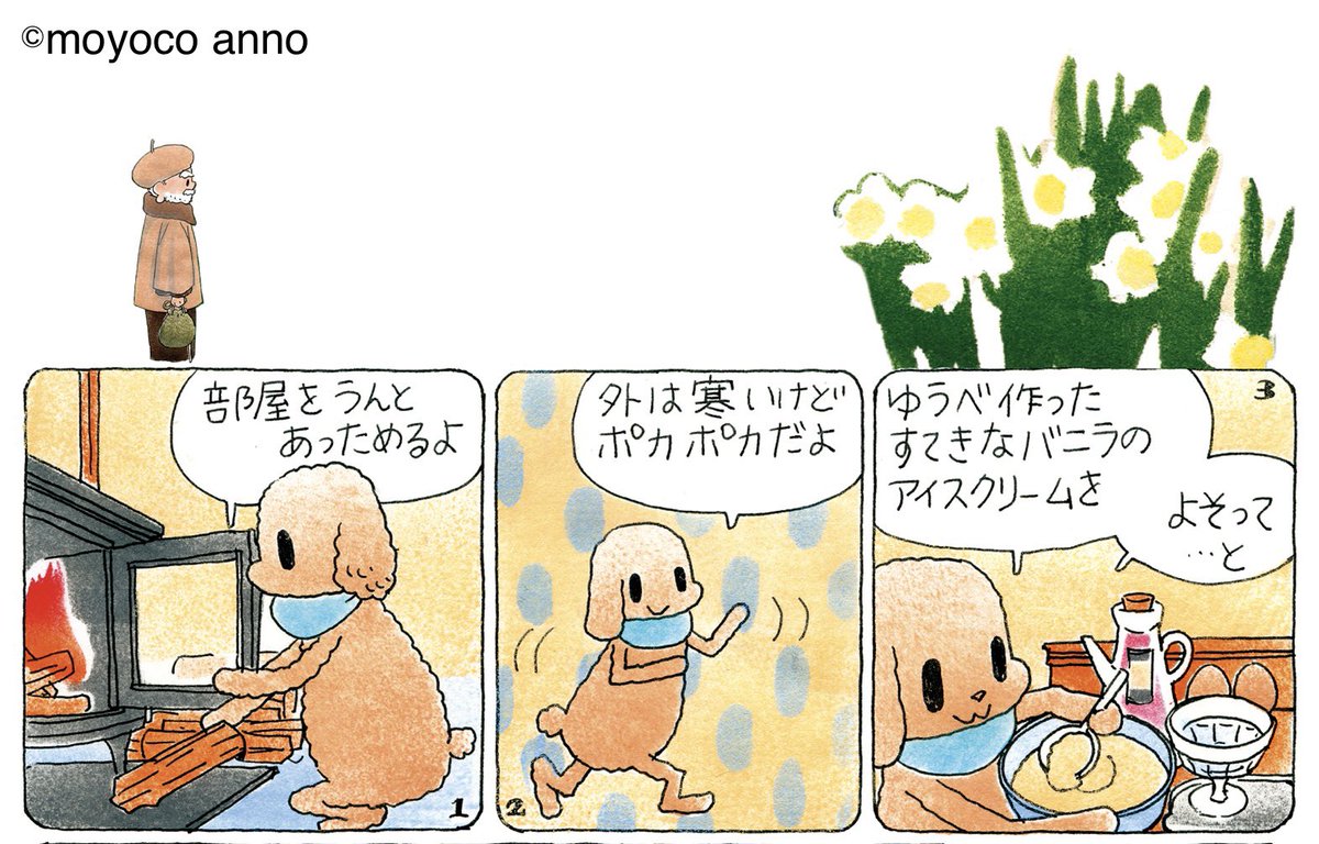 『今週読める #オチビサン』を 更新しました❗️ 暖炉に薪をくべて お部屋をうんとあっためる パンくい。 手づくりのすてきな バニラのアイスクリームを よそって… 「外は寒いけどポカポカだよ」 ▼続きはこちらで読めます🍨 ochibisan.com/weekly/2022/01… (スタッフ珠)