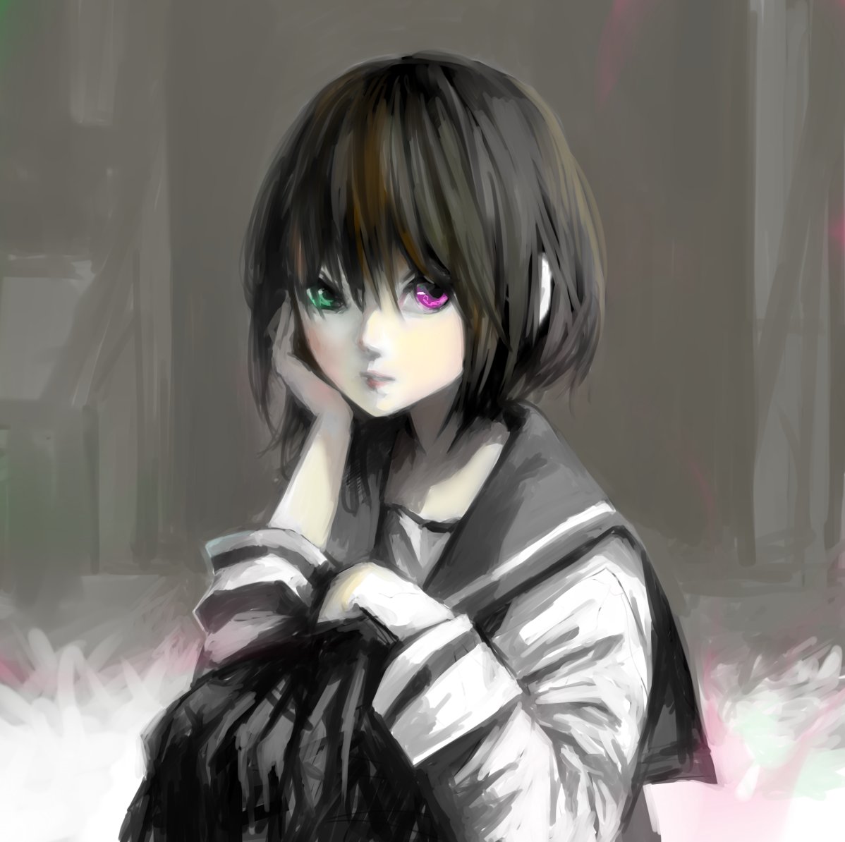 二枚だけですが、メイキングです 右が完成版です #オリジナル #女の子 #デジタル #イラスト #オッドアイ #黒髪 #メイキング #絵描きさんと繋がりたい #イラスト好きさんと繋がりたい #夏の創作クラスタフォロー祭り