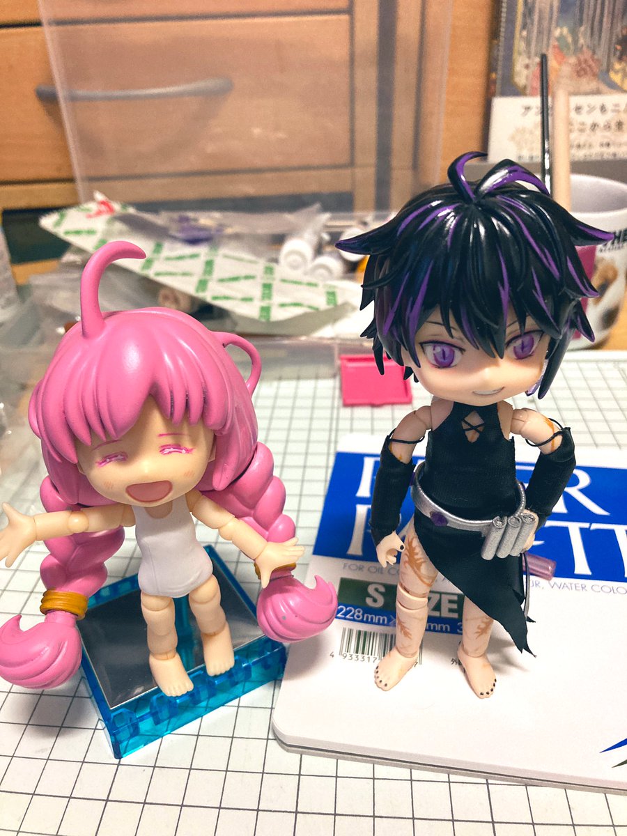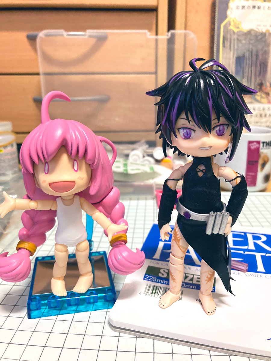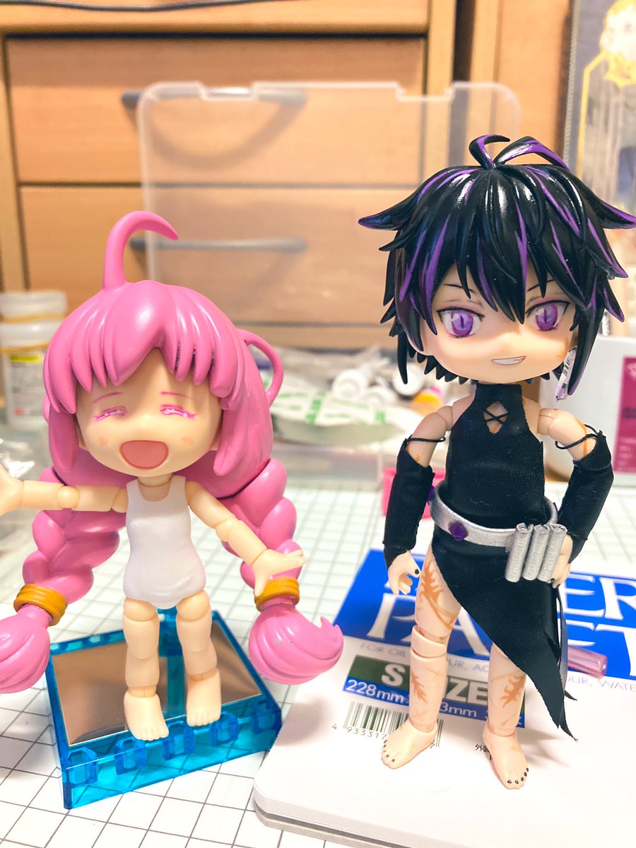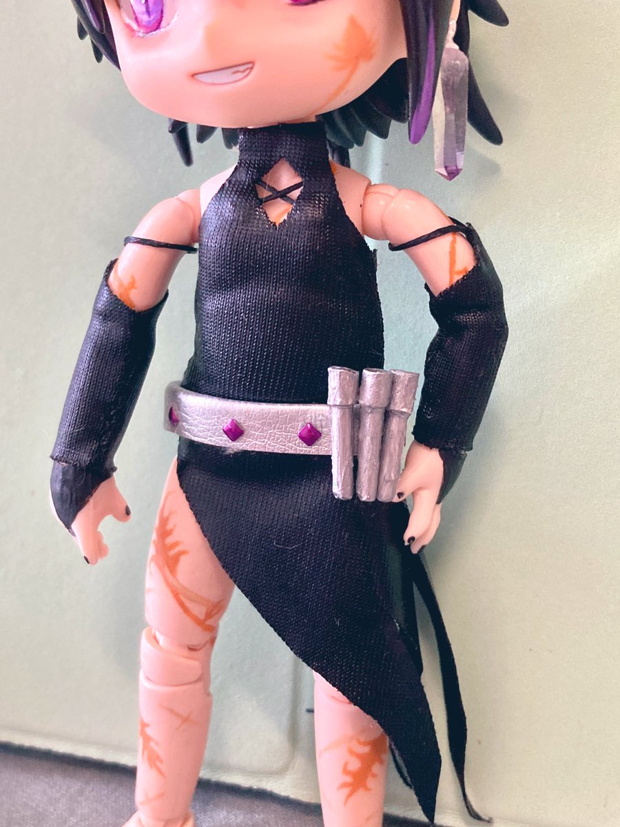 #オビツろいどアザミん に装着。 スケール感はこれで良さそう! ・筒の部分をもっと綺麗に塗るか、布を巻いて作り直す ・ベルト本体が少しブカブカなので、あと数ミリ締める #キュポろいどクコちゃ とあわせて、9月・11月のコミティアに連れて行くまでの課題にしよう。