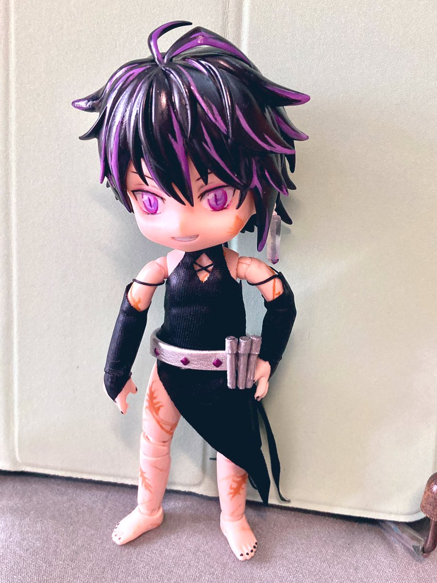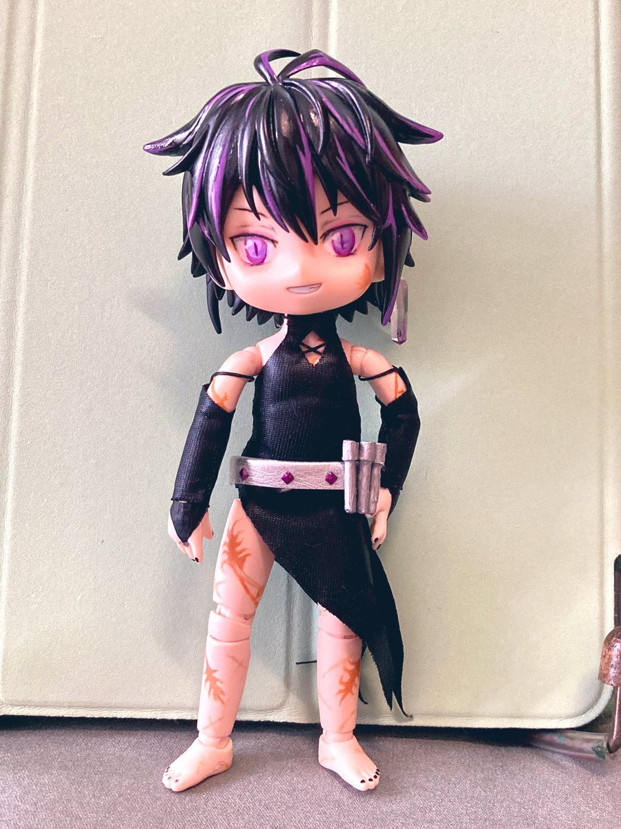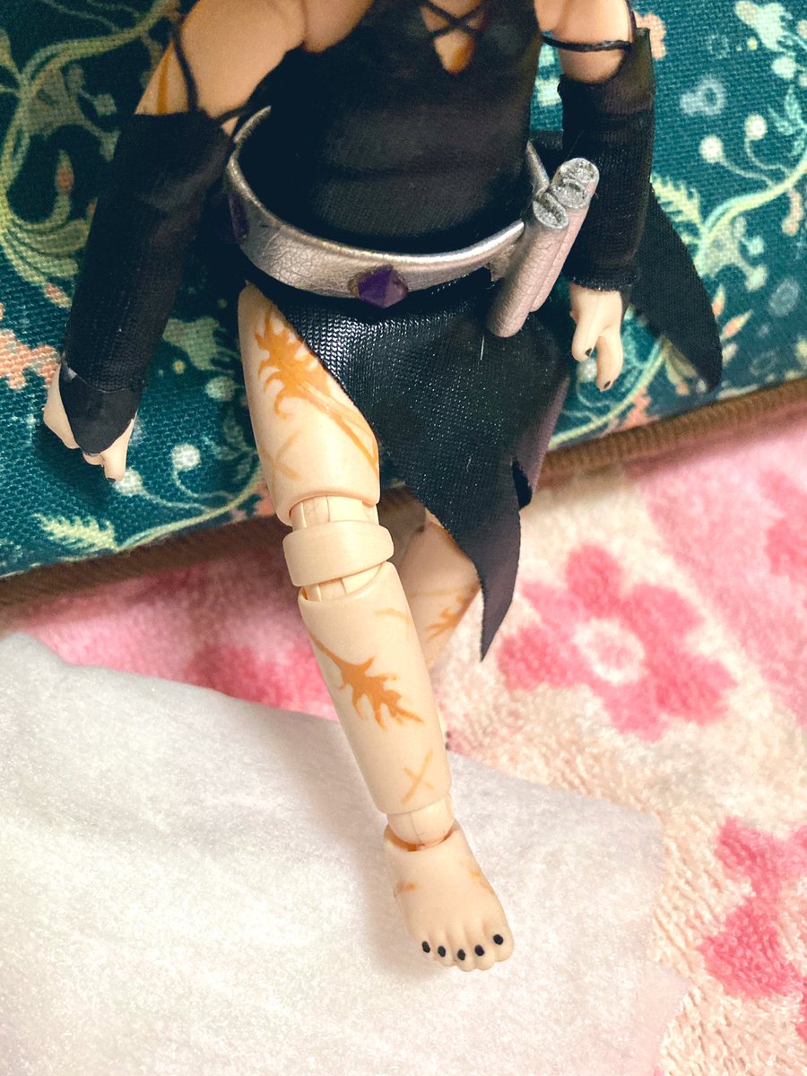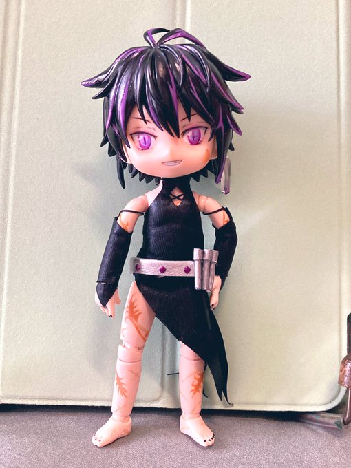 #オビツろいどアザミん に装着。 スケール感はこれで良さそう! ・筒の部分をもっと綺麗に塗るか、布を巻いて作り直す ・ベルト本体が少しブカブカなので、あと数ミリ締める #キュポろいどクコちゃ とあわせて、9月・11月のコミティアに連れて行くまでの課題にしよう。