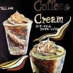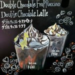 スタバのメロンが無くなって悲しんでるそこのあなたに。 ピンチヒッターで登場しているこちらもオススメですぞ。 スタバのボード描きました✨ #スタバ #ダブルチョコレートフラペチーノ #オファリングボード #illustration #イラスト