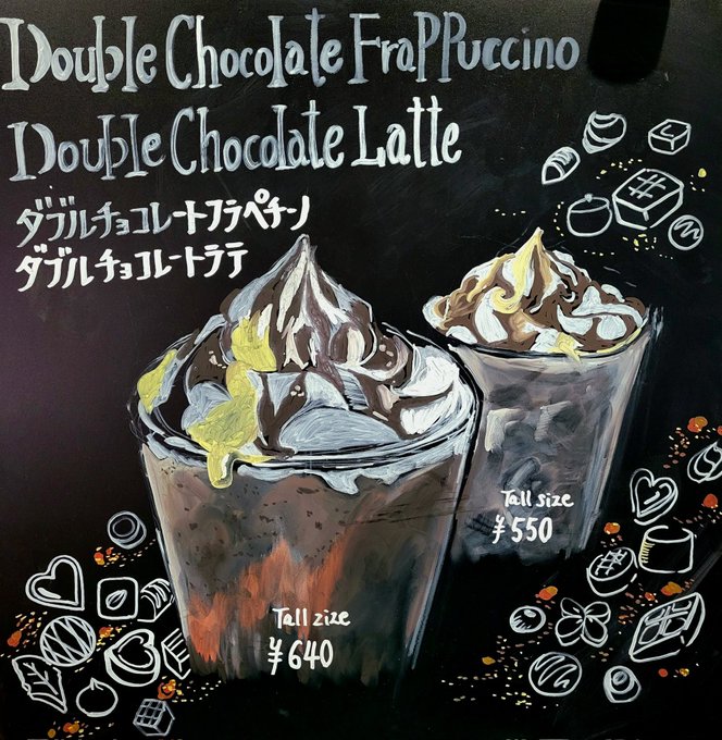 本日から発売のドリンクボード! 担当させていただきました✨🖼️✨ #スタバの新作 #フォンダンショコラフラペチーノ #スタババレンタイン #オファリングボード #illustration #artworks #お絵描き #チョークボード #少しでもいいなと思ったらRT