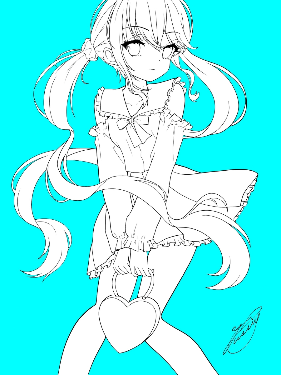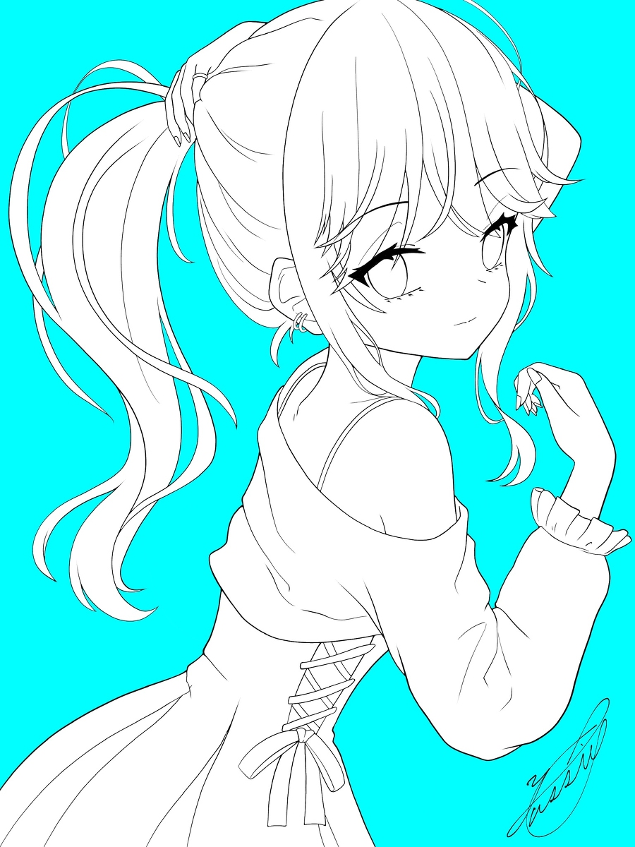 ぬり絵です ご自由に色を塗ってください(*ᴗˬᴗ)⁾ ↓↓↓ ibispaint.com/art/620762122/ #ibispaint #イラスト好きさんとつながりたい #ティアードスカート #オフショルダー #ツインテール #ネクタイ #線画 #ぬり絵