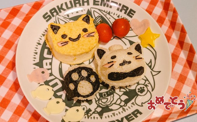 アズレン5周年おめでとうございます🎂 クオリティが低すぎるけど とうふさんおにぎり🍙と厚揚げの謎ネコプレート作りましたŧ‹"ŧ‹"(๑´ㅂ`๑)ŧ‹"ŧ‹" 5周年記念の新オフニャ追加もよろしくお願いします #アズレン5周年アート #アズールレーン #オフニャ @azurlane_staff