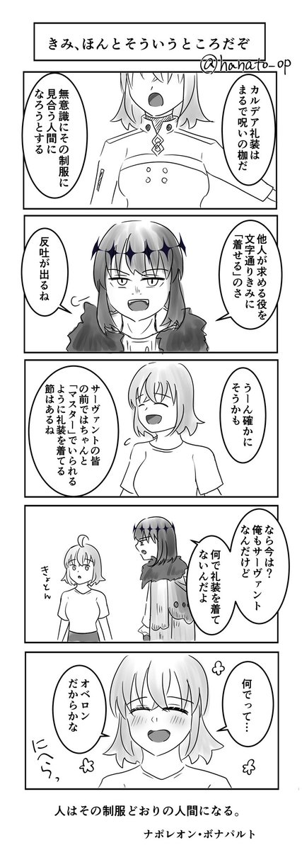 #オベぐだ子ワンドロワンライ2 お題:寒がり 「オベ口ンって寒がりなんだと思ってた」 「仮にそうだとしても、女の子に風邪をひかせるわけにはいかないだろう?おいで」 (うっかり検索避けし忘れたので再投稿)