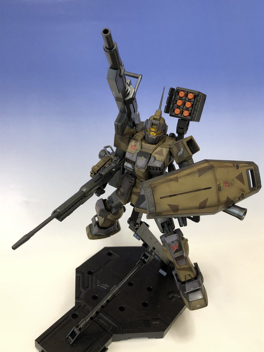 【ジム・スナイパーカスタム重装型】 ちょっと前の作品です。最近ツヤあり仕上げばっかりでした^ ^ 全塗装ではなく、カーキ部分は成型色にマスキングで迷彩塗装して汚しただけです。 ロングレンジから近接戦まで何でも来いです‼️ #オラコン2021 #ガンプラはどんな自由な発想で作ってもいいんだ