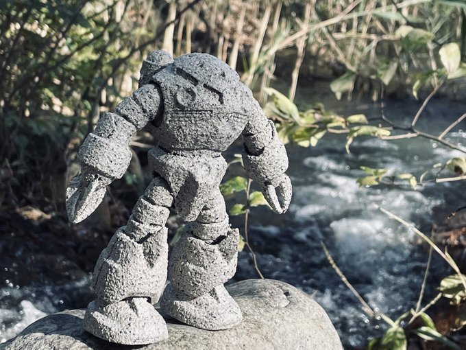1年戦争当時 極東の島国で小規模の戦闘が発生した時に、1機のズゴックが村を守るような行動で戦渦を免れた感謝を後世に残す為に、村の特産である石を使って石工たちが組み上げた石像 と言う脳内設定(^^) #オラコン2021 #ガンプラ #ガンプラの画像を貼るとRTされると聞いて