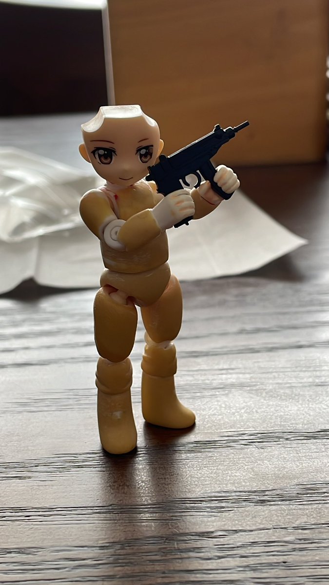 久々に再開しようと引っ張り出してきて持たせてみた。トリガーガード折れちゃった💦やっぱりちょっと大きいかなあ🤔でも子供が持つんだからこれくらいでもいいのか🤔 #デスクトップアーミー #オラザブ3バザー編