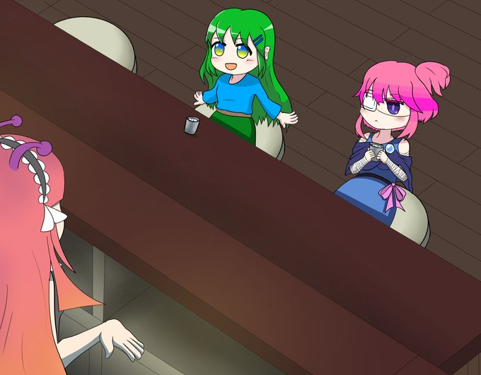 #オリキャラコネクト #しまにち しまカフェで自由研究について聞く葉ちゃんとオリビアちゃん!! そういえば2人とも出身がしま島とMinecraftの世界ということで自由研究知らなそうだなと思って描きました!☺️