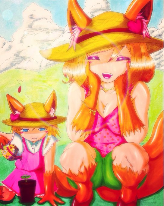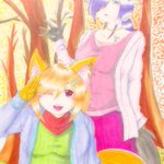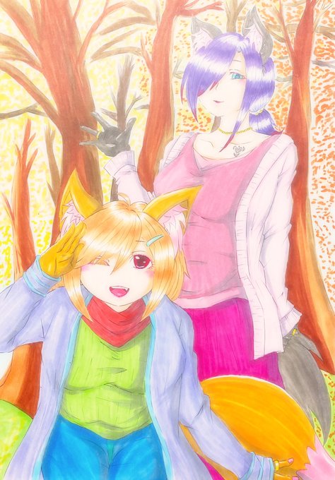 秋の森で待ち合わせ。 そして、合流。 #オリジナルキャラクター #オリキャラ好きさんと繋がりたい #イラスト #イラスト好きな人と繋がりたい #創作イラスト #アナログ絵 #コピックイラスト #ケモ耳