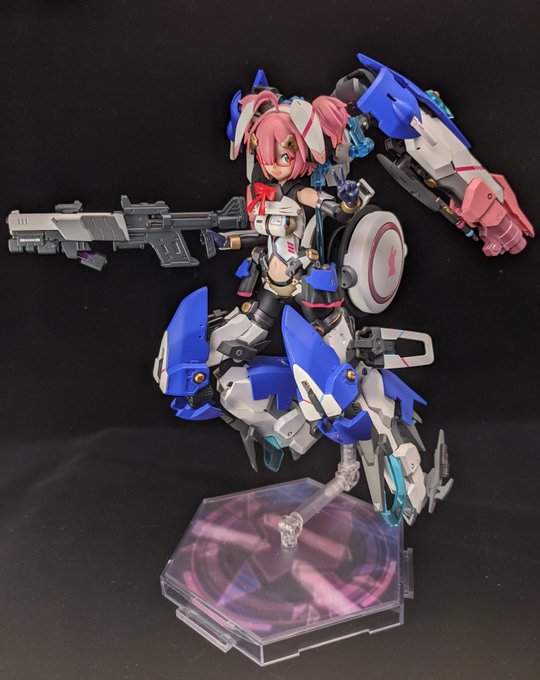 オリジナルキャラ 小聲ぴぴ子アクトレスver.できました 未完作をしばらくぶりに再開して無事完走です パーツ構成以外でもそれっぽくしたくてアリスギアでよく見る輪っかをつけてみました 動かすカロリーが尋常でないので追記はまたこんど! #メガミデバイス #オリジナルアクトレス