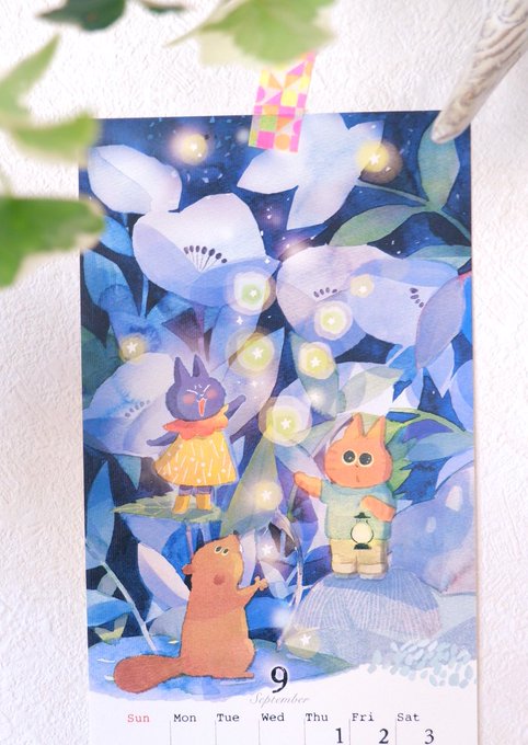 昨日3部だけ印刷してきた😊 今日壁掛け用のおまけシール 頼んで、ポストカードバージョンカレンダーも作って 後は、印刷したらカレンダー 完成🤭 キャンドゥ行って来よ💦 #イラスト #オリジナルカレンダー