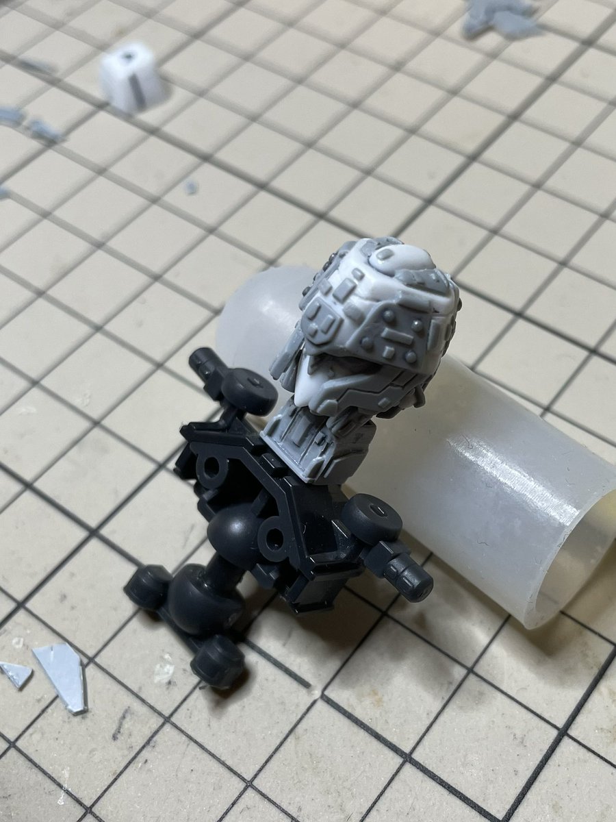 オリジナルガンダムの首パーツをプラ板で製作中でやんす🤓 #フルスクラッチ #おいでよスクラッチ沼 #プラモデル #ガンプラ #ガンプラ初心者 #ガンプラは自由だ #オリジナルガンダム #ガンプラ好きと繋がりたい
