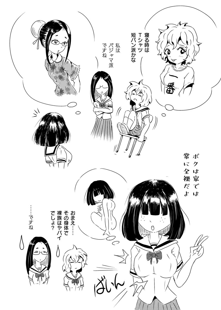 今日の漫画……「パジャマ」 「今度パジャマパーティしようよ」 #芸術同盟 #みんなで楽しむTwitter展覧会 #絵描きさんと繋がりたい #イラスト #オリジナルギャラリー #創作漫画 #漫画が読めるハッシュタグ