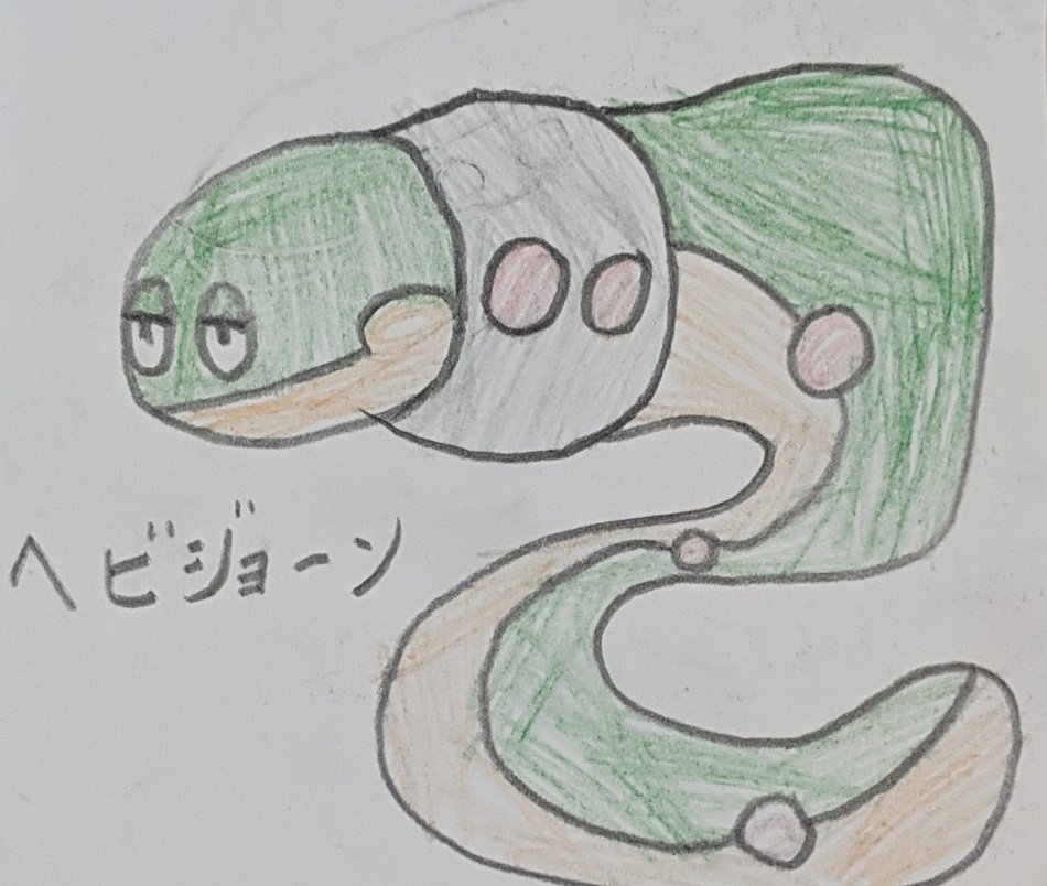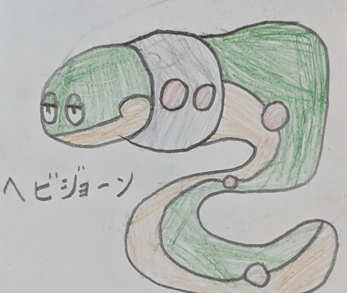 名前:ヘビジョーン タイプ:じめん・どく へびポケモン ミミズズがLv.38で進化 ミミズズよりも長く約200キロで地下を掘り進む #ポケモン #イラスト #オリジナル #キャラクター #オリジナルイラスト #オリジナルポケモン #オリジナルキャラクター