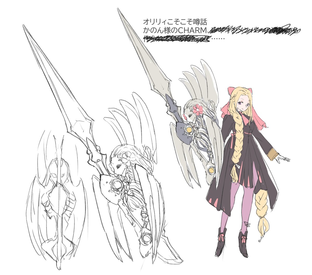CHARM第3形態が出来たので 第一形態>棺 第二形態>2つのマギクリスタルコアを1つのCHARMで運用する超攻撃型 第三形態>戦場のマギインテンシティが極限に達したとき稀に発動する。 形状のおぞましさゆえにこの形を知っているレギオンだけとしか戦場を共有できない。 #オリジナルリリィ合同