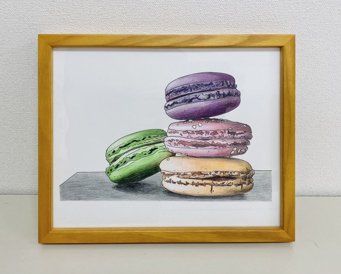 前塗ったマカロンたちをフレームに入れました。 #イラスト #絵画 #色鉛筆 #絵描きさんと繋がりたい #みんなで色鉛筆イラスト見せ合おうよ #みんなで楽しむTwitter展覧会 #オリジナル塗り絵作ります ↓塗り絵「スイーツ編」はこちらから amazon.co.jp/dp/B09NVD9KDV