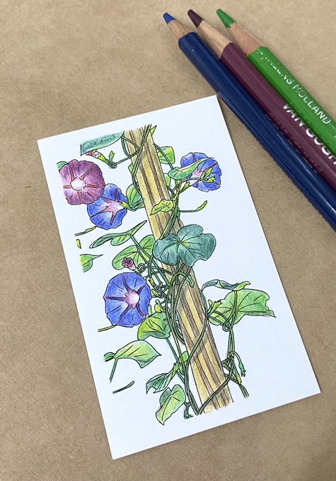 この前練習中だった、朝顔をもう一度塗りました。 #イラスト #絵画 #色鉛筆 #絵描きさんと繋がりたい #みんなで色鉛筆イラスト見せ合おうよ #みんなで楽しむTwitter展覧会 #オリジナル塗り絵作ります