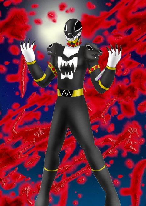 オリジナル戦隊 吸血戦隊ヴァンパイジャー 四人目の追加戦士 モンスターブラック/ベルゼン 敵であるシンマ族の暴食を司る幹部の一人 すべての強敵を喰らいつくす暴食のベルゼンが変身。 #スーパー戦隊 #オリジナル戦隊 #イラスト #イラスト好きな人と繋がりたい #イラスト好きさんと繋がりたい