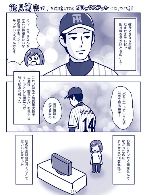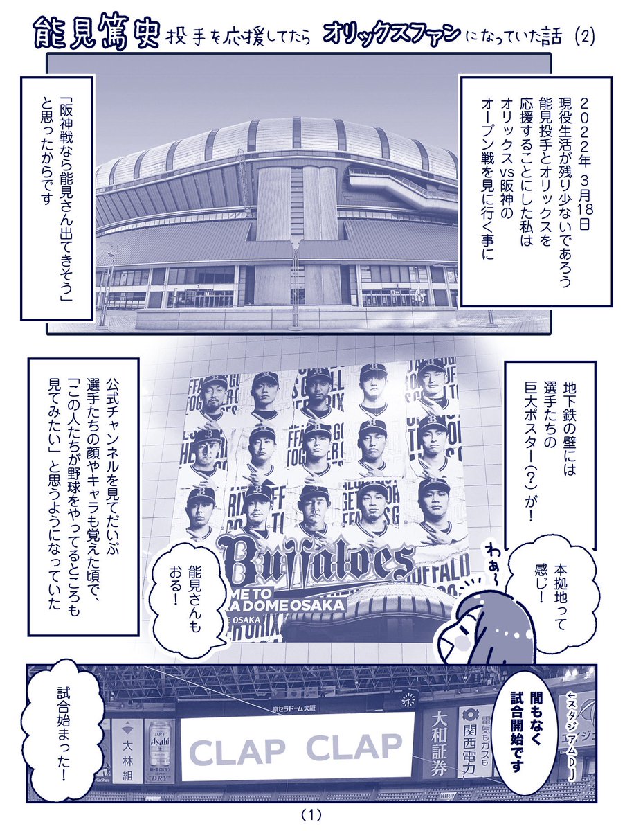 去年引退した#能見篤史 投手と #オリックス・バファローズ についてのエッセイ漫画を描きました 勢いで描いたのでアレですけど ご笑覧ください 続きがあるとしたら次回は 「オープン戦に行ってみた」の回です